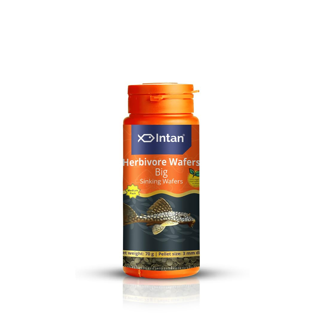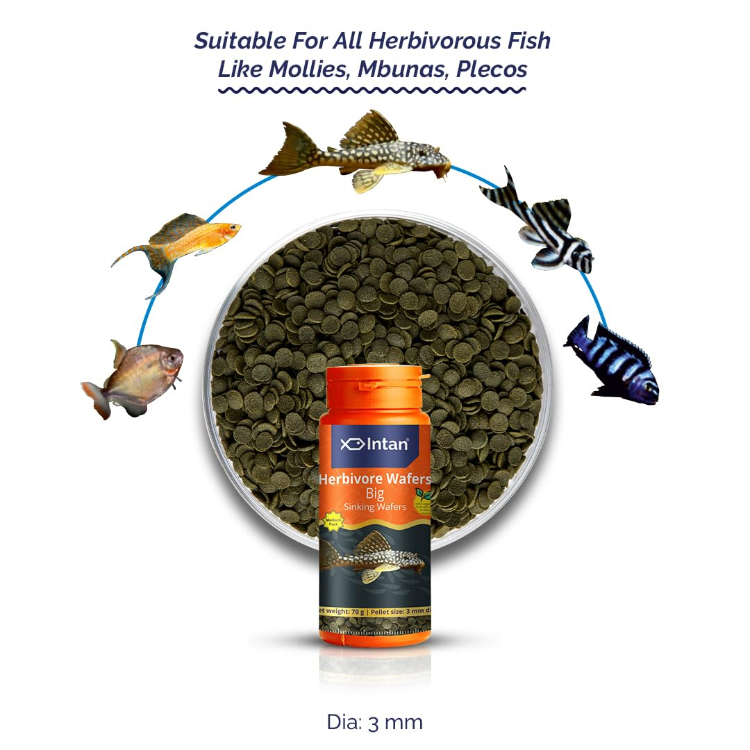 Intan Herbivore Wafers (Big 3.0mm Sinking) | 70gm – Highly Nutritious Ornamental Fish Food for Herbivorous Fish – Mollies, Mbunas & Plecos | Growel Feeds