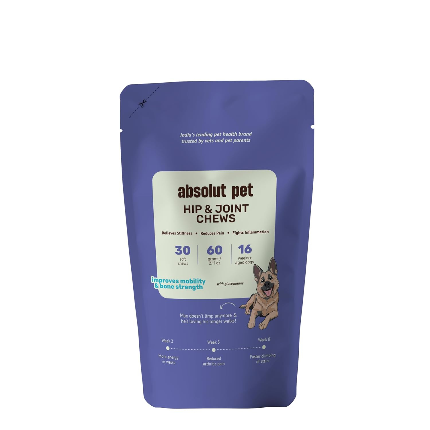 Absolut Pet Hip and Joint-Supplements for Dogs Chews That Improve Mobility & Bone Strength with Glucosamine, Chondroitin & Collagen (30 Chews)