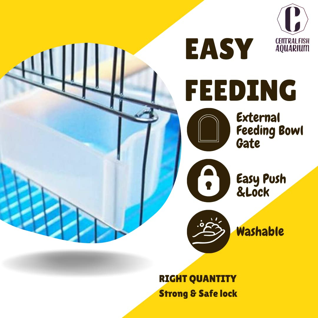 - For Budgies, Finches, Love Birds, Cocktails, Conures It comes with 2 feeder cups , 1 perch stick