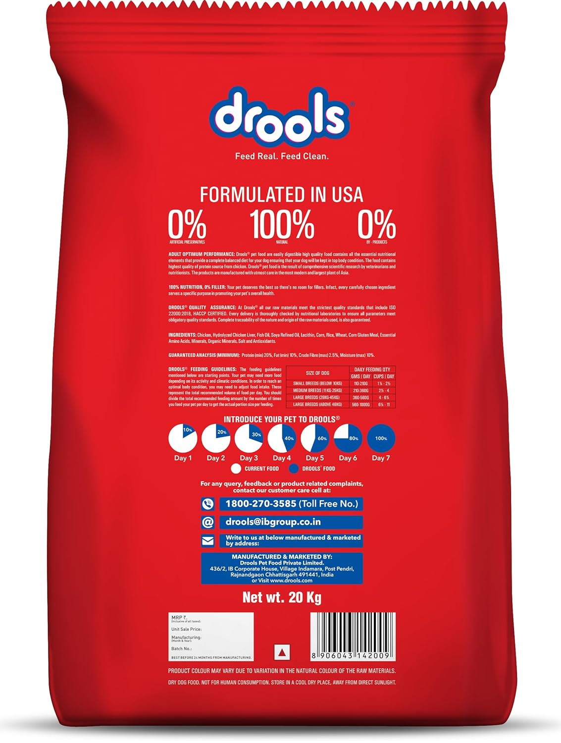Drools Optimum Performance Adult Dry Dog Food, Chicken Flavour, 20 KG