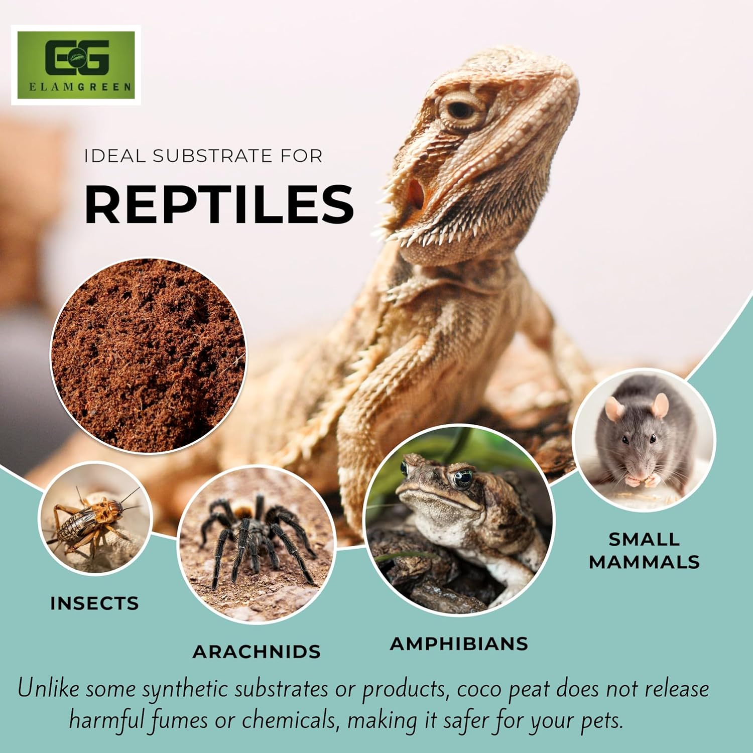 Elamgreen Coco peat for Animal Bedding | Reptiles Small Animals Tortoise Python Frog Snake Chicken Rabbit Birds | pet Products pet Supply Indoor & Outdoor (5kg)