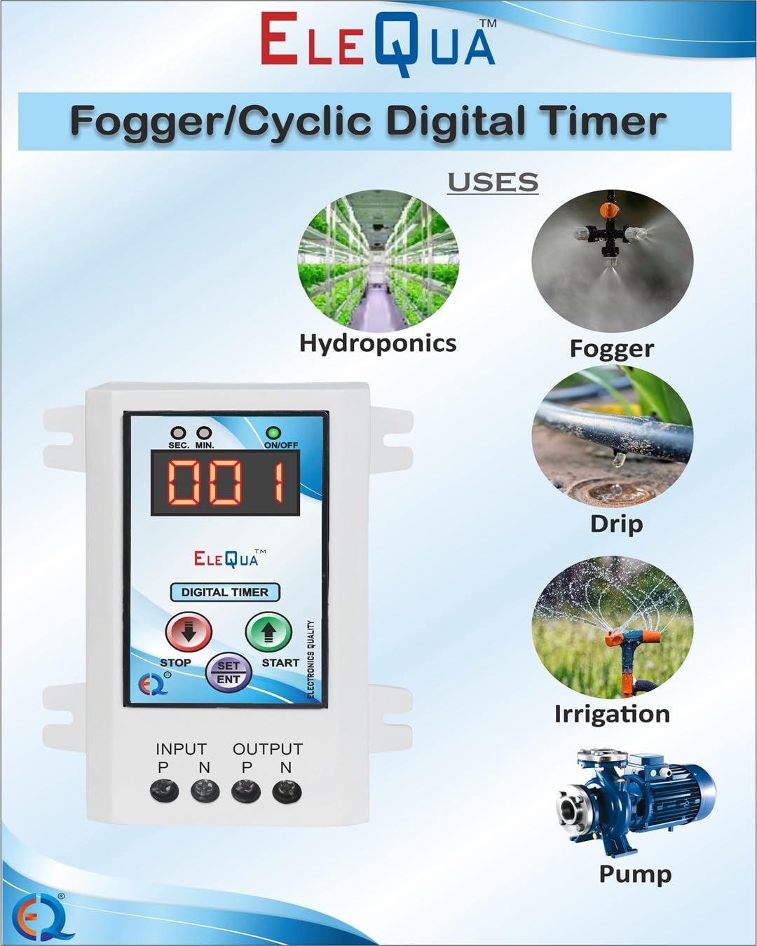 ELEQUA Cyclic Timer (ON/Off in SEC./MIN.) for Fogger,Hydrophonics and Other cyclic & Auto Stop Application Up to 1Hp/15A