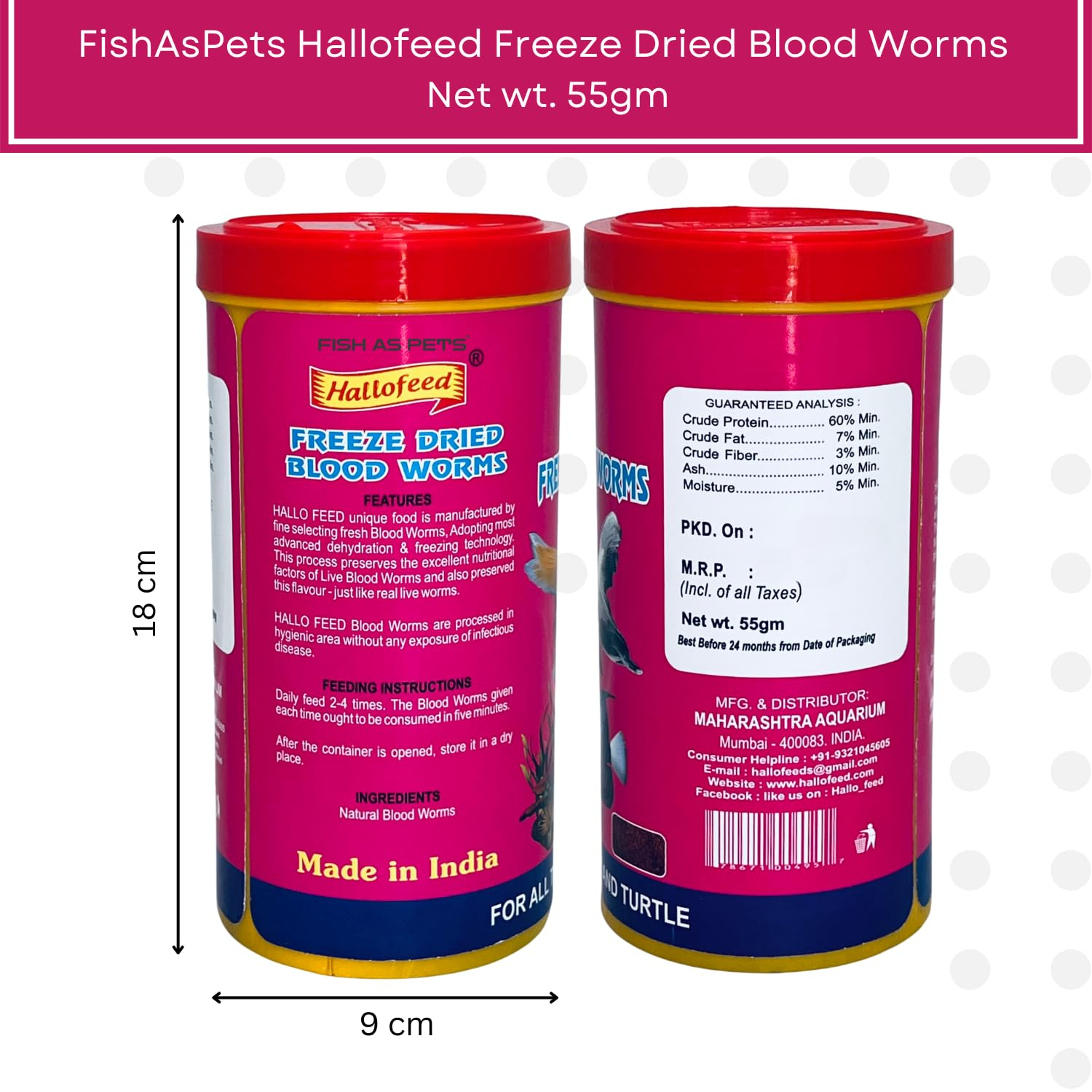 | Flavour | Blood worms 55 grams + 10% extra |