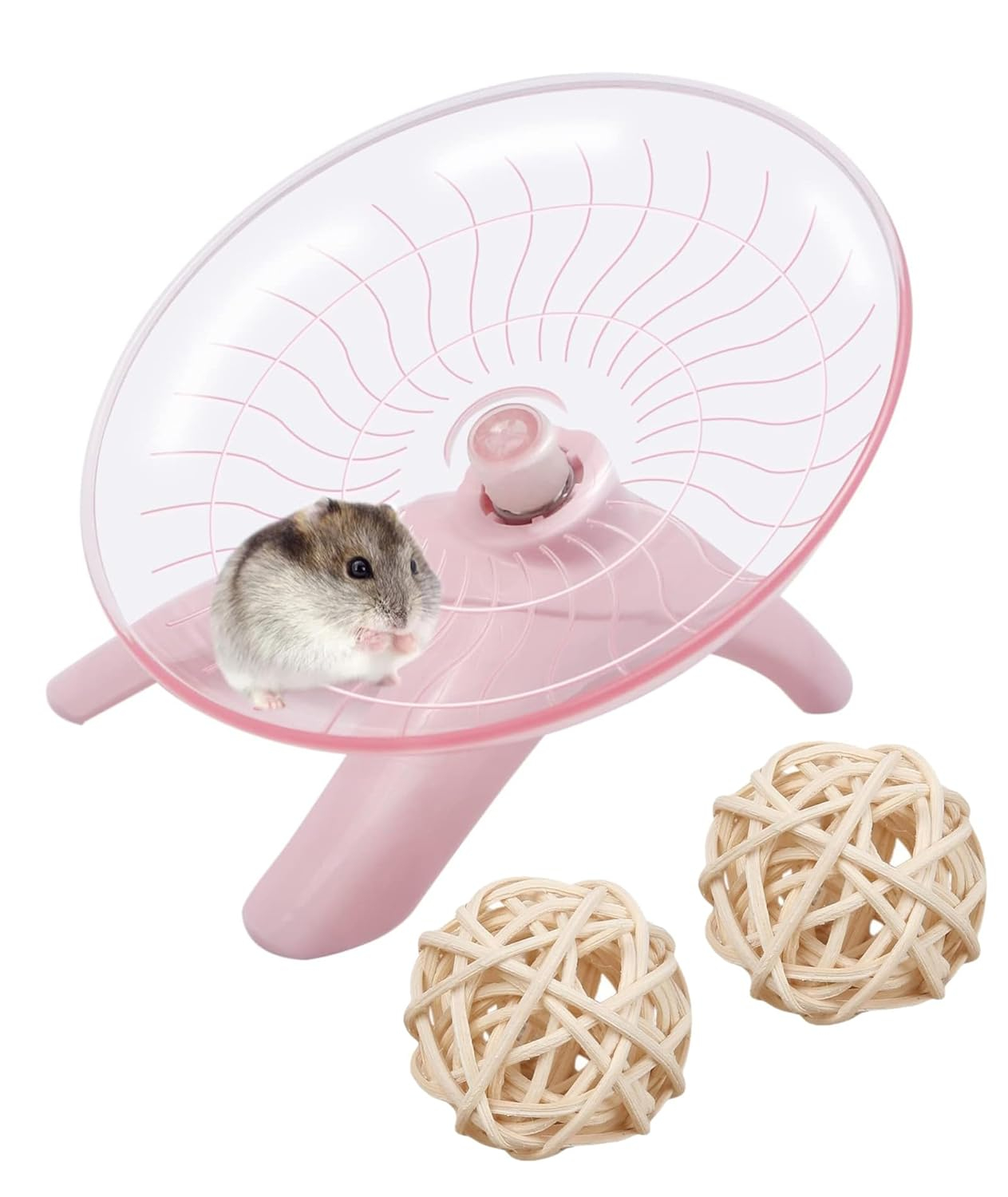 Hamster Toys Set, Silent Hamster Wheel with 2 Rattan Balls, Pink Hamster House Accessories for Small Pets in Apartments, Space-Saving Pet Entertainment Complete Set: The hamster toys includes one pink hamster wheel and two rattan balls for added entertainment; Provides a comprehensive exercise and play option for small pets. Durable Construction: Made with sturdy materials for long-lasting use; The hamster wheel and rattan balls are designed to withstand daily activity from small pets. Safe Design: Features a spacious running surface for hamsters; The hamster house enclosed design helps avoid injuries during exercise. Easy Maintenance: The hamster wheel smooth surface allows for quick and hassle-free cleaning; Maintains hygiene with minimal effort to keep your pet’s exercise area clean. Quiet Operation: The hamster wheel operates silently, making it ideal for apartments; Smooth rotation ensures a peaceful environment for both pets and owners.