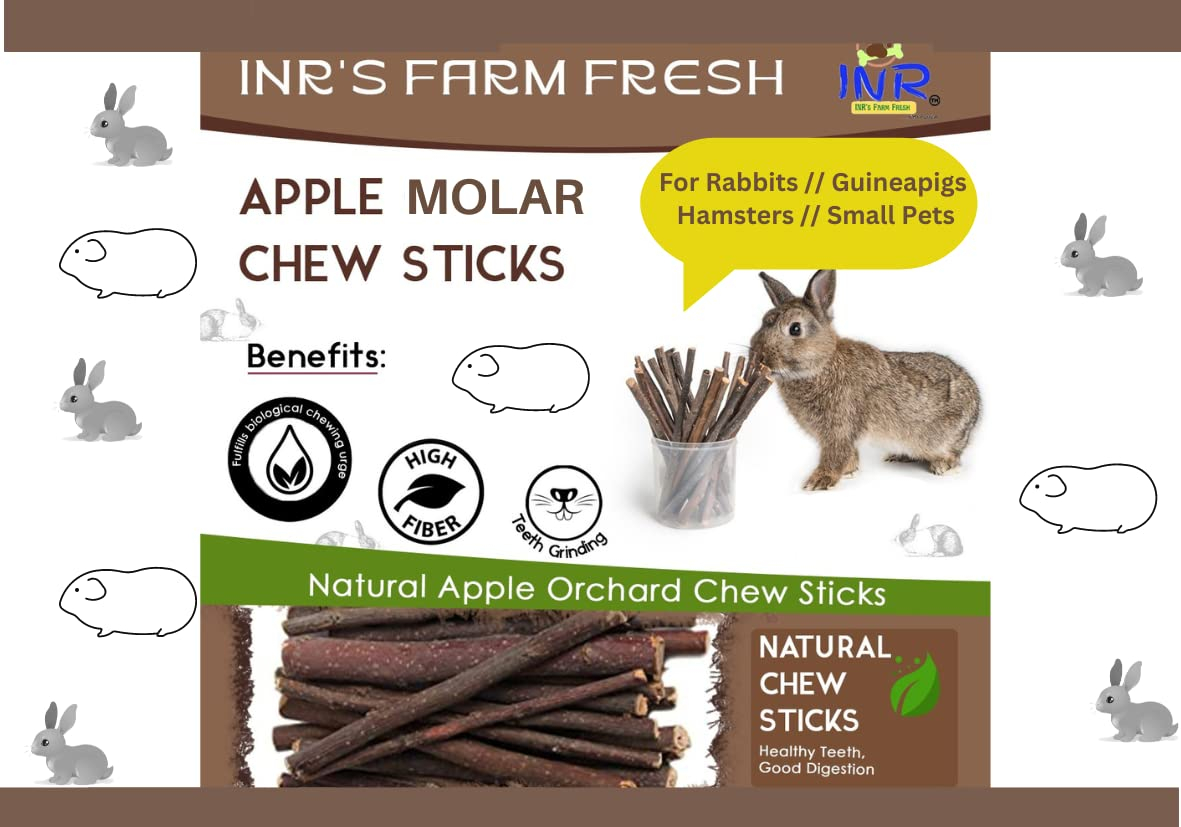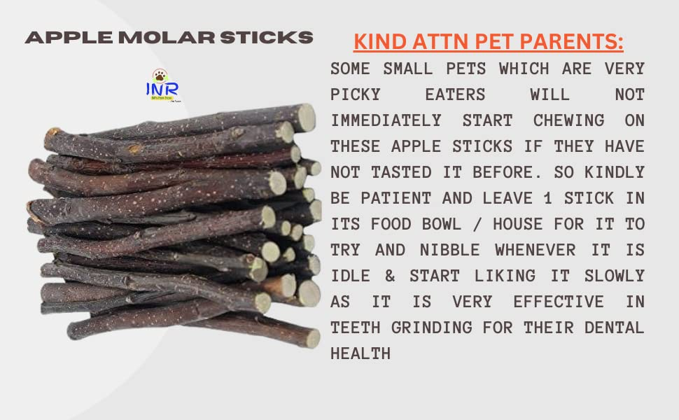 - Natural and Safe Material: Made from 100% natural apple wood, INR’s Farm Fresh Apple Sticks are pesticide-free, ensuring a safe and healthy chewing experience for small pets.
