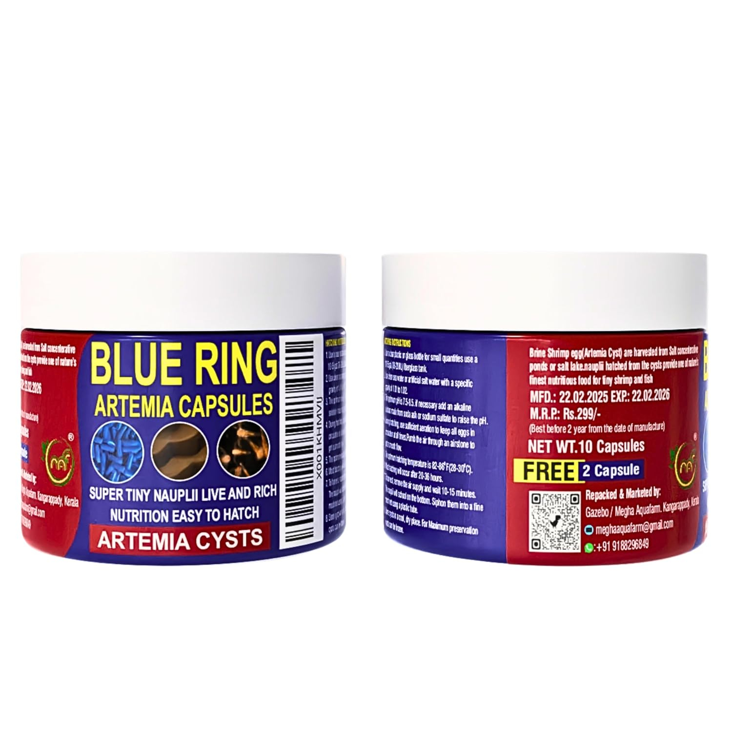 MAF Imported Blue Ring Artemia Cyst Capsules 10 + 2 Free, Premium Brine Shrimp Eggs Capsules 95% Hatching in 24 Hours (12 Capsules), Ideal Live Food for All Fresh and Marine Fish Fries