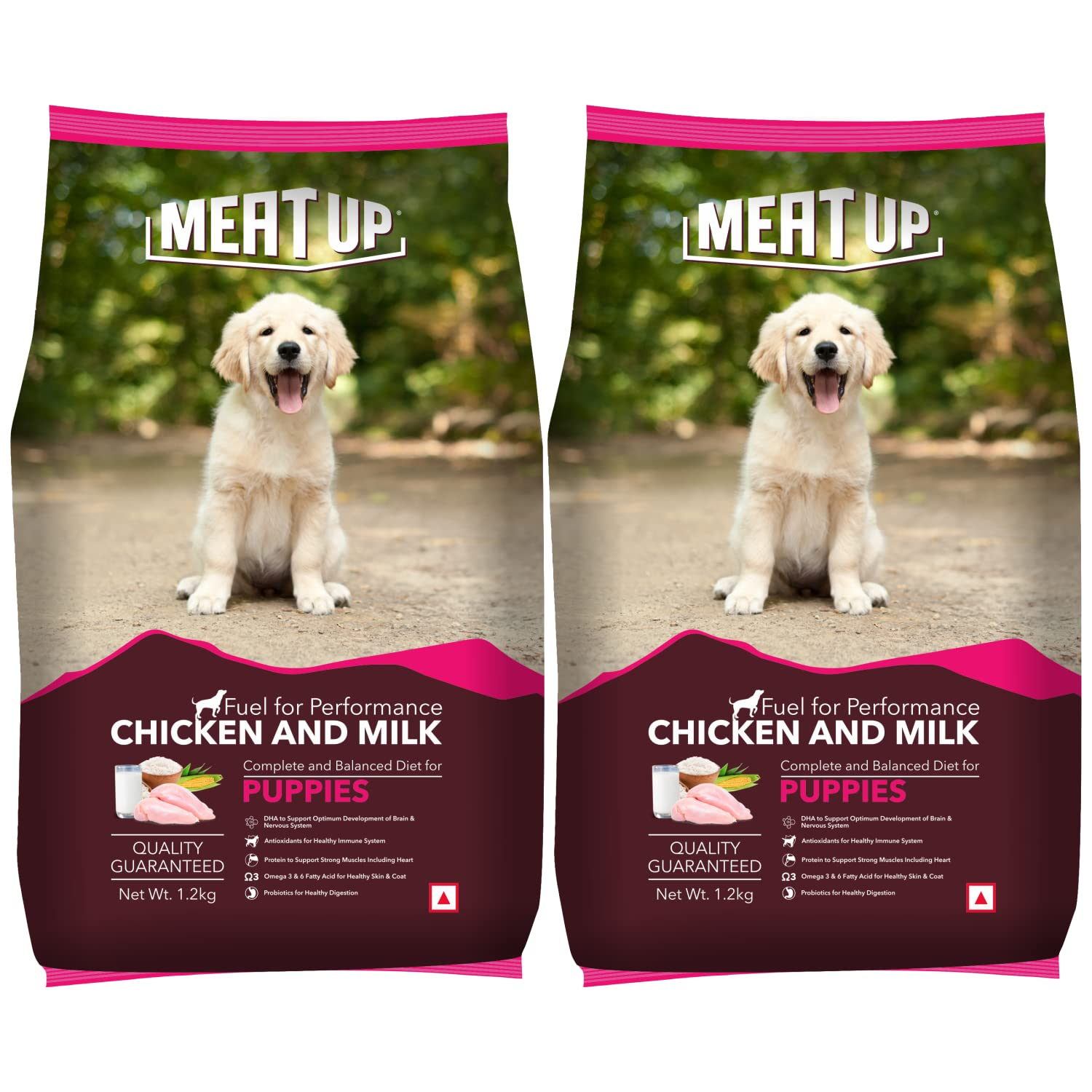 Meat Up Puppy Dry Dog Food, Chicken and Milk Flavour 1.2Kg (Buy 1 Get 1 Free) Total 2.4Kg Pack