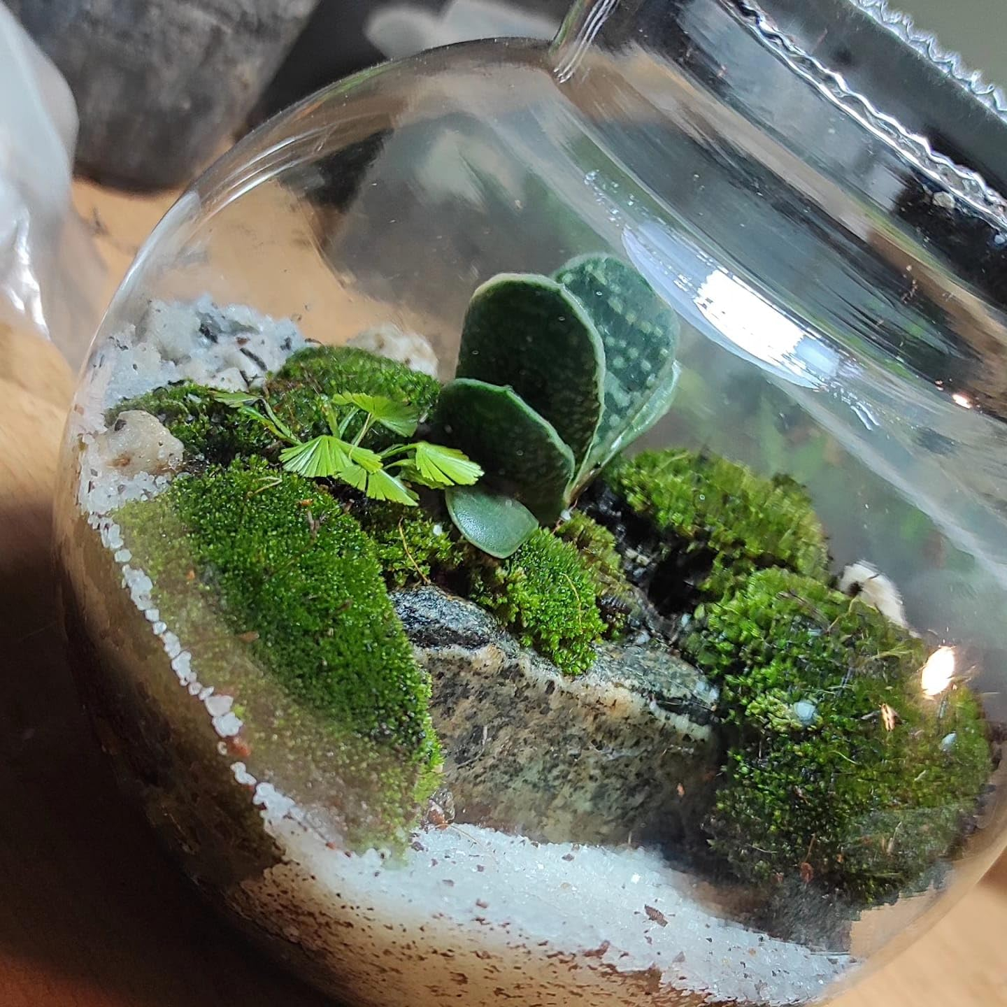 Transform your terrarium into a captivating miniature landscape with Nature Design India Hill Moss. This distinctive slow-growing moss creates charming hill-like clusters that add depth and texture to your indoor garden. Each pack contains 5 pieces of lush green moss that can be artfully arranged on soil or nestled between rocks. The fine, smooth texture of this moss provides a natural, serene aesthetic to your terrarium setup. While it thrives with basic humidity levels, this versatile moss requires proper ventilation to maintain its vibrant appearance. Position your terrarium in medium lighting conditions to keep the moss looking fresh and beautiful. Note that excessive humidity in closed terrariums may cause deterioration, so maintaining proper air circulation is essential. Perfect for both novice and experienced terrarium enthusiasts, this moss helps create stunning miniature landscapes that bring a touch of natural beauty to your indoor space.