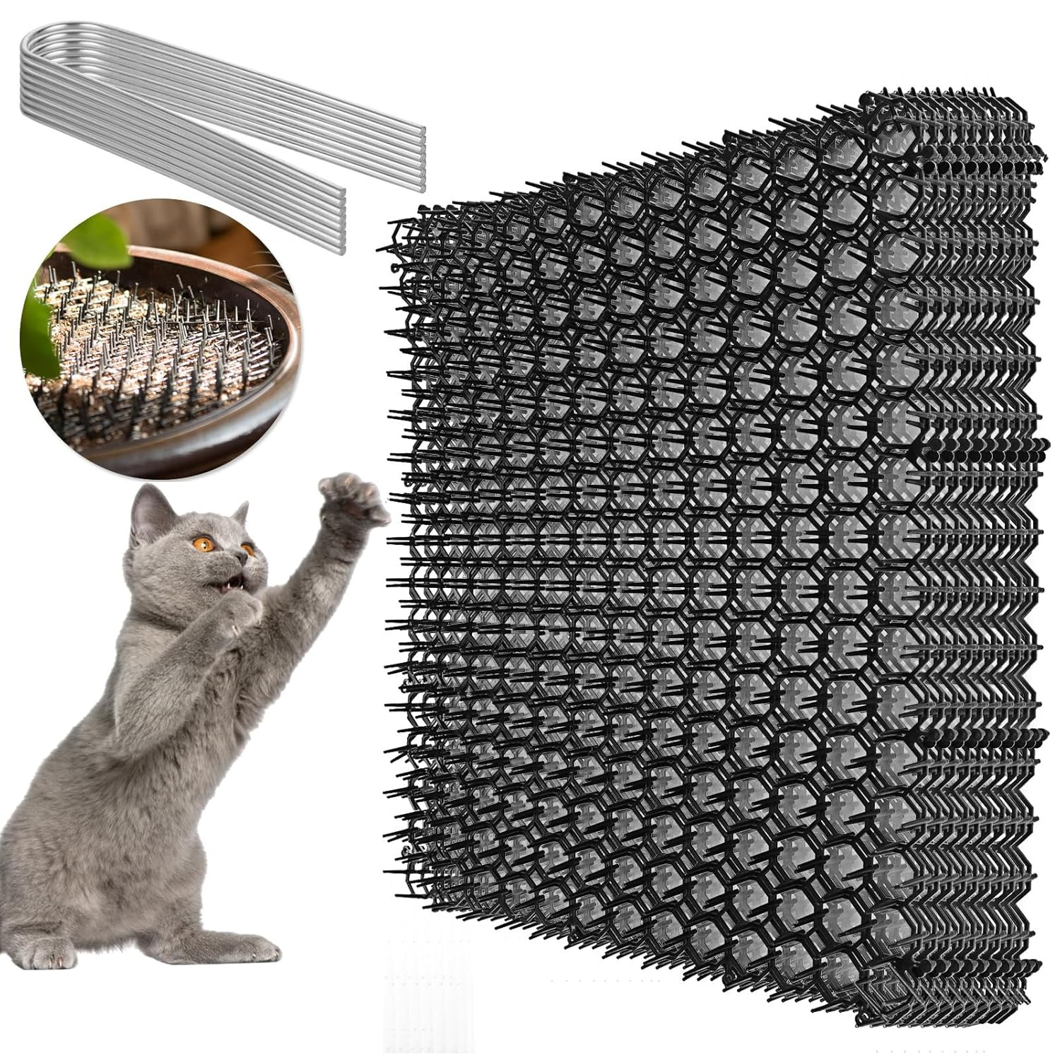 - 【Effective cat repellent】Our cat spikes are a very effective solution. The plastic spikes on the mats can be uncomfortable for cats, keeping them away from your garden and indoor spaces and other areas that need protection, effectively stopping them from jumping, scratching, etc.