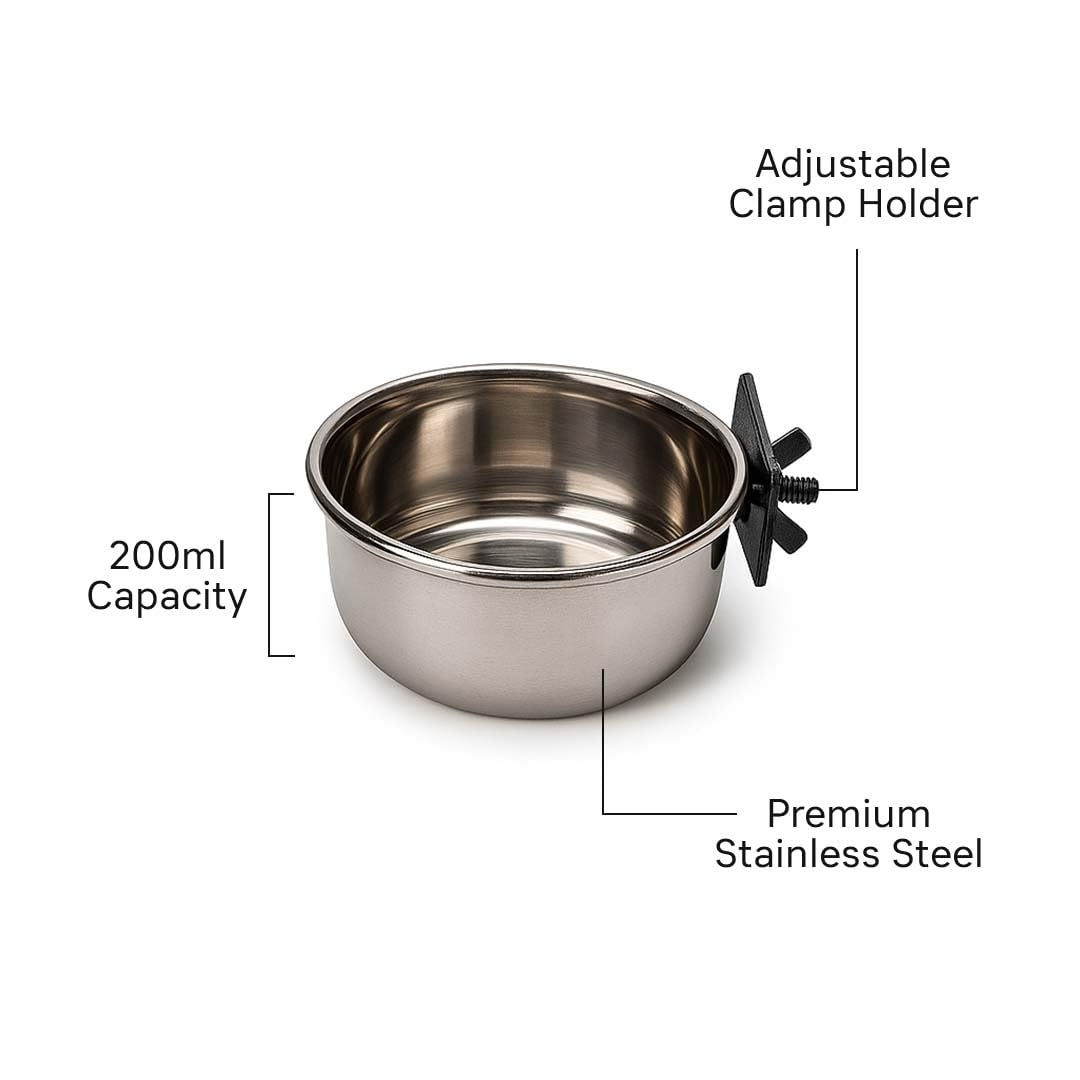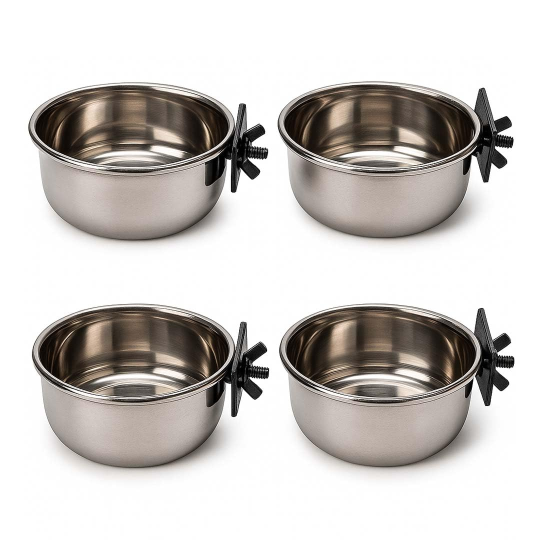 Pets Empire Stainless Steel Birds Coop Cup Feeder Bowl with Clamp Holder, 200 ml (Pack of 4)