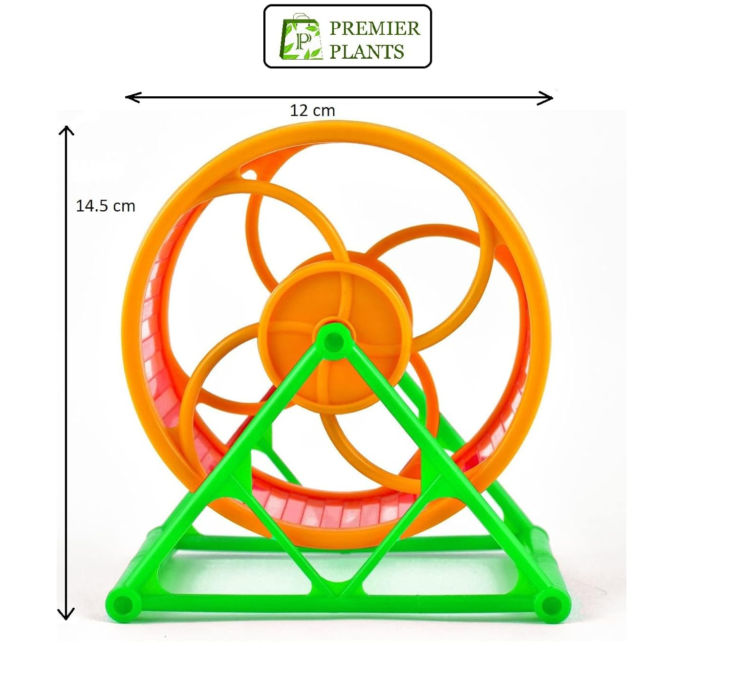 PREMIER PLANTS 12.5 cm Jumbo Running Cum Jogging Cum Exercise Wheel for Hamster/Dwarf/Gerbil/Mice/Mouse Random Colour – 1 Piece (Semi Covered) (Hamster Wheel)