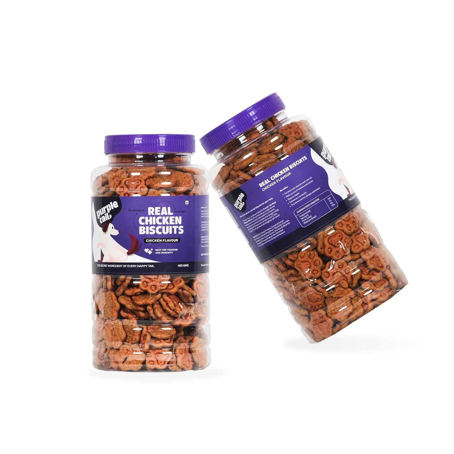 Purple Tail Dog Biscuit Chicken Flavour | Adult Dog | Dog Biscuits for Puppy | Dog Food for All Types of Dogs – Total 910 Grams (Buy 455 gram Pack & Get 1 Free)