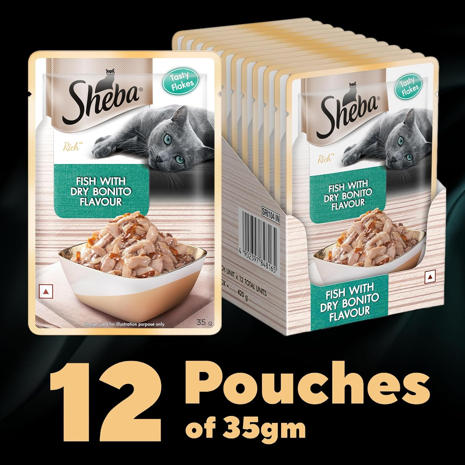 | Included Components | Sheba Fish Premium Cat Food, Dry Bonito Flake in Gravy, 35 g (Pack of 12) |