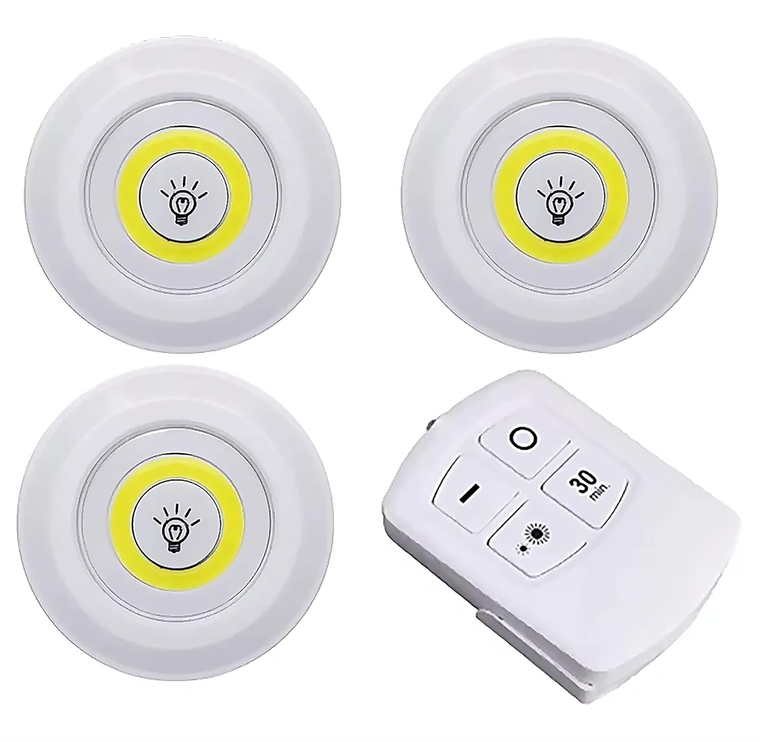 Techking 15 Years Warranty Portable & Stylish 3-Pack LED COB Lights – Adhesive, Stick-On, Remote and Touch Controlled with Dimmer & Timer, Compact Lighting Solution for Bedrooms & Display Shelves