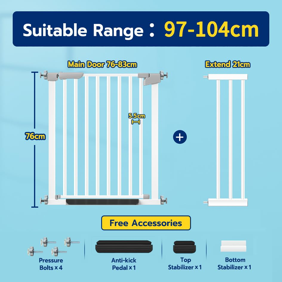 Uliance Barricade Auto Close Pet Safety Gate Metal Baby Pet Safety Gate Adjustable, 2 Way Auto Close, Barrier for Stairs, Door and Hallways (White, 97-104cm)