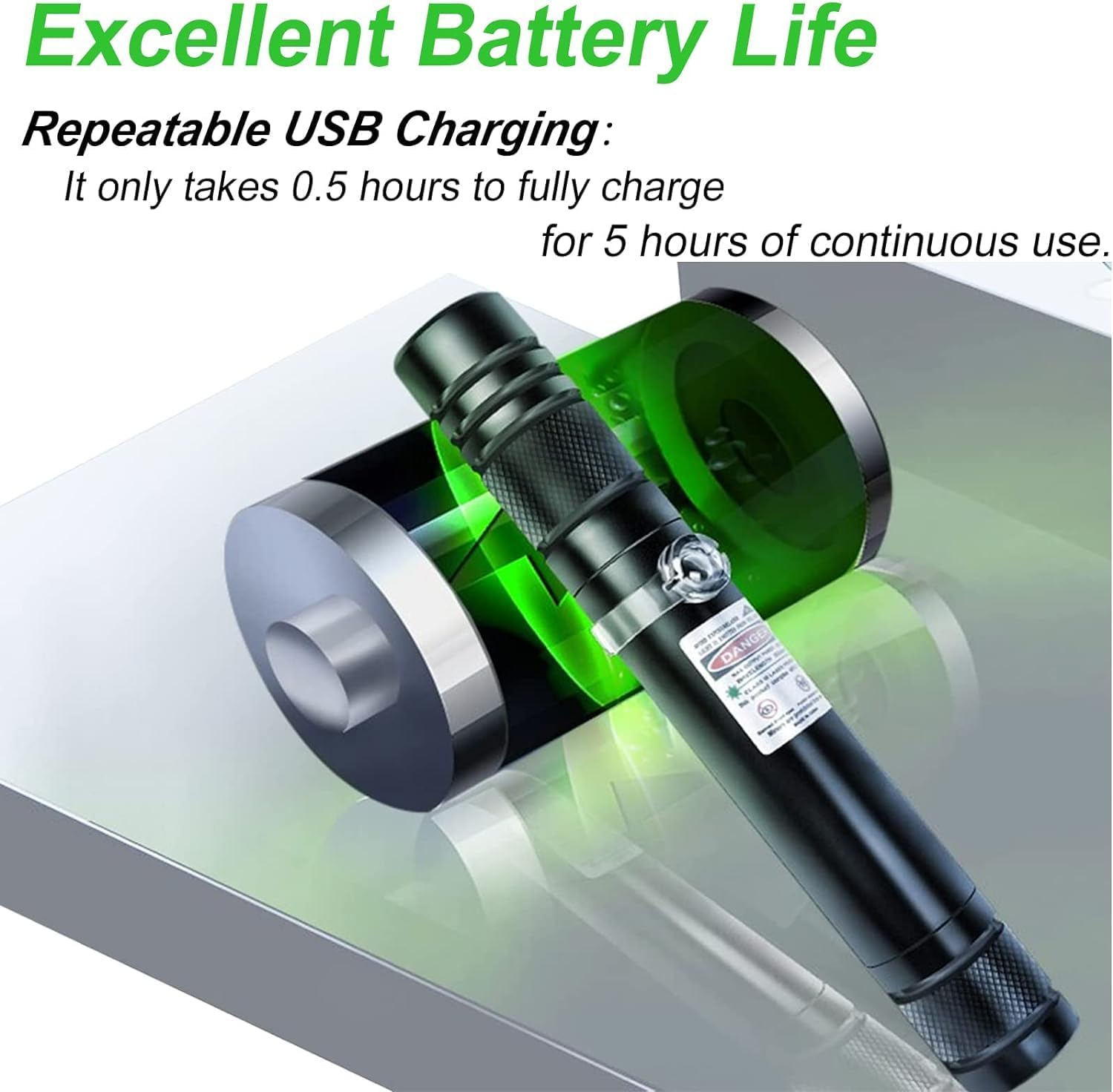 USB Rechargeable Red Laser Pointer, 2000m Range, Adjustable Mode, Handheld Light for Party, Disco, Cat Toy, Camping, Hiking (Green, Pack of 2)